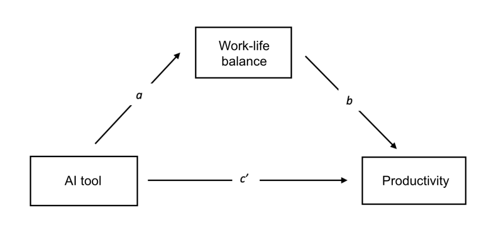 Recognizing potential mediators and their effects is crucial, especially if AI doesn’t directly enhance productivity but does so through alternate mechanisms. In our scenario, while implementing AI technology seems a logical step to improve productivity, discovering that work-life balance plays a stronger role might lead business leaders to explore other avenues, such as revising time-off policies or enhancing workplace conditions, to improve it. The AI tool, in this instance, might be just one of several factors contributing to work-life balance, which in turn boosts productivity. Understanding mediation and its dynamics enables businesses to identify and implement truly effective solutions.